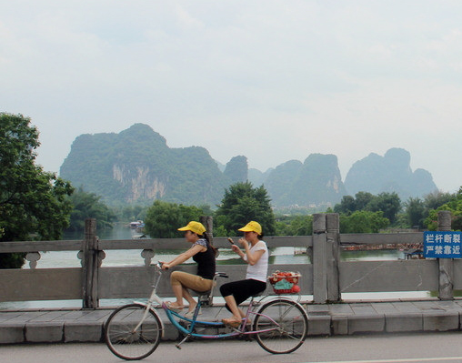 For years, biking is popular with tourists as a healthy and free way to get a great experience in Yangshuo. Some families of three ride a three-seat bike swaggering through the street, some are crazily racing with friends, and some show off their trick-cycling. As long as time permit, you can make a time of biking to the adjacent villages, freely enjoy the countryside scenery, enjoy the waters and hills of Yangshuo, visit Moon Hill, Camel Hill, the Big Banyan Tree, watch beautiful sunset on the bank of Yulong River, and closely see local villages’ life. You can also incorporate a rock climbing, bamboo rafting, or a short beak in a teahouse of the river bank into your bicycle tours around the area.