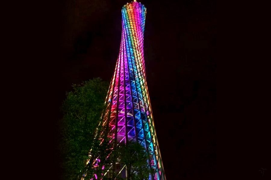 Nicknamed Xiao Man Yao(literally means slim waist), the Canton Tower is also known as Guangzhou New TV Tower. It is located in Haizhu District of Guangzhou city, 125 meters from the south bank of the Pearl River, and faces the Zhujiang New Town and Flower City Square across the river. The main body of the Canton Tower is 454 meters high, and the antenna mast is 146 meters, forming the total height of it 600 meters. It is the tallest tower in China and the fourth tallest one in the world when it is built, only behind the Burj Khalifa Tower (828 meters) in Dubai, the Tokyo Sky Tree (634 meters), and the KVLY Tower(628.8 meters) in North Dakota.