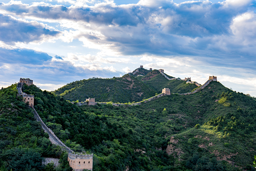 The Jinshanling Great Wall was initially built from 1368 to 1389, also mainly directed by General Qi Jiguang. The 700 meters elevated Great Wall is about seven to eight meters high and five to six meters wide, which is made of brick and stone and its Watching Beijing Tower is on the highest position, where people say they could see Beijing right from here.