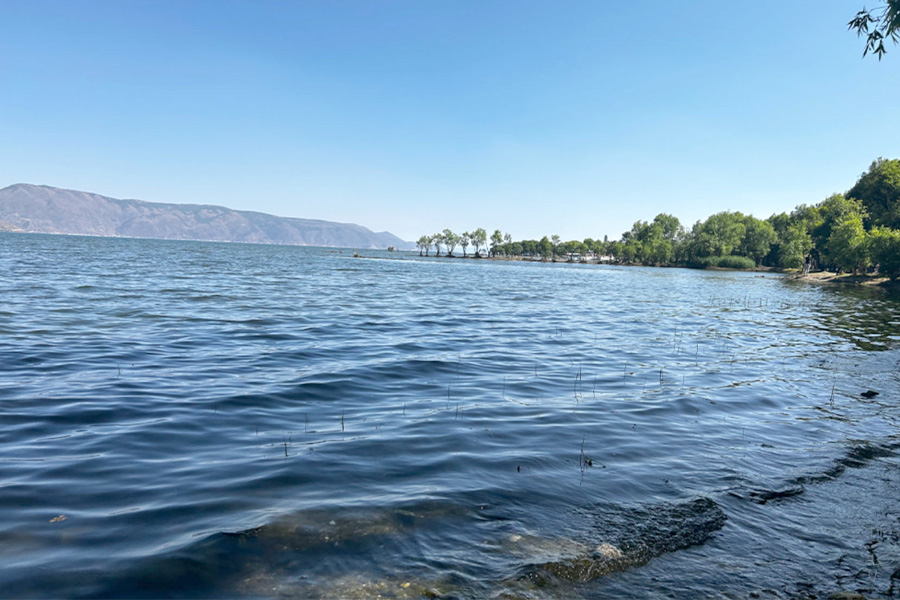 Today we will head to Butterfly Spring, a popular beauty spot. Situated at the foot of Mount Shenmo, the first of the peaks of Mount Cangshan, Butterfly Spring rises to form a square shaped pool that is shaded by the dense foliage lining its banks. Above it there is an ancient decumbent tree. This is the famous 'Butterfly Tree', so called as in the short interval as spring turns to summer, its fragrant blossom attracts thousands of butterflies. These small multi-colored creatures fly around the pool and settle on the tree in great clusters as they sip the nectar from its blooms. The vast numbers of butterflies are hardly distinguishable from the flowers as the whole tree pulsates with every color of the rainbow.