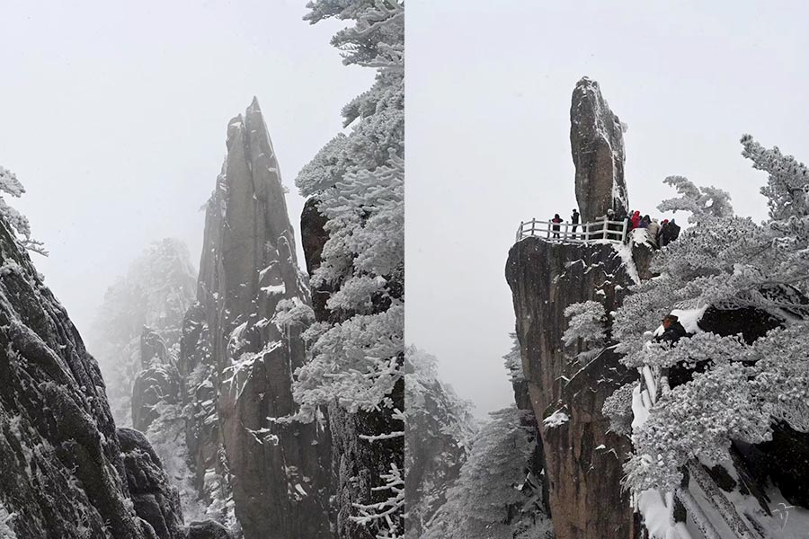 Mt. Huangshan, known as "the loveliest mountain in China", is famous for its magnificent scenery made up of many granite peaks and rocks emerging out of clouds. Its landscape features “four wonders” of imposing peaks, spectacular rocks, odd-shaped pines, and a sea of clouds. Mount Huangshan boasts 72 peaks, more than 1,000 meters above sea level, with three main peaks rising majestically. The famous Welcoming Guests (Yingke) Pine (1,500 years old) and See-Guest-Off Pine have become a symbol of being faithful, unyielding and hospitable.