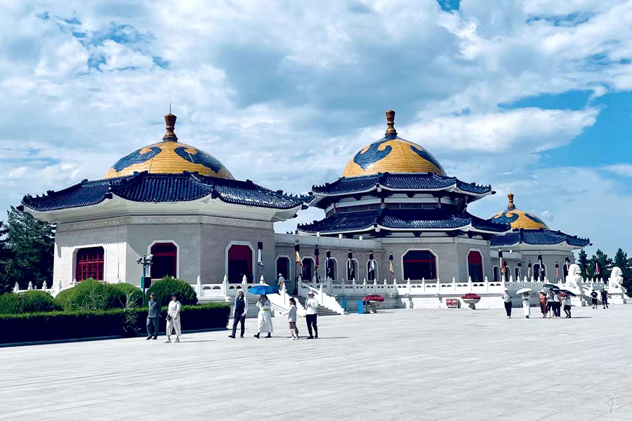 Leave for the Genghis Khan Mausoleum in the morning. After about 1 hour's drive, arrive and visit the mausoleum, the main structure of which is made up of three connecting palaces in Mongolian yurt style. In the main hall is a 5-meter-high statue of Genghis Khan; on the walls are frescos on different themes about this ancient emperor, including his birth, misfortunes, conquering west and east, unifying the Mongolian tribes. Then continue to visit the Genghis Khan Mausoleum Tourist Area, which is known as "the largest site of showing Mongolian custom in China". During lunch time, you can enjoy the large show "Eternal Genghis Khan" at your own expense if you like (RMB 120/per person).
