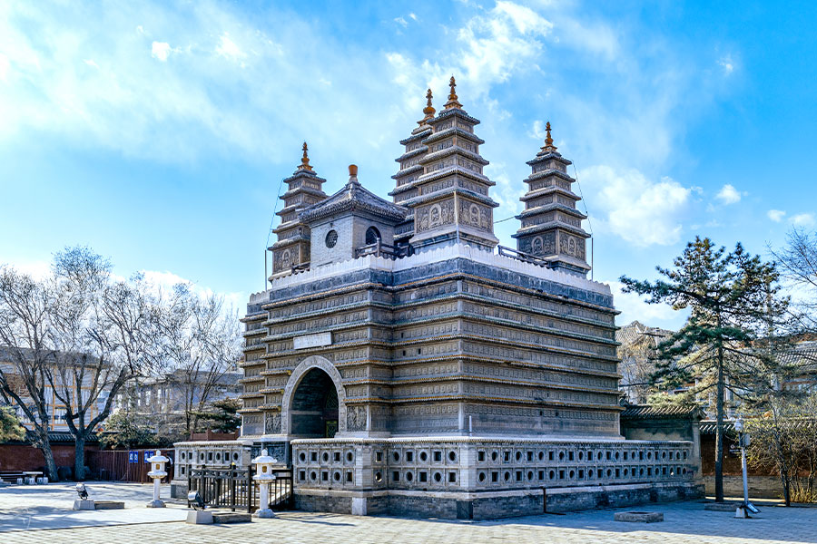 Drive to Hohhot. When you arrive in Hohhot, you will be met and then head for Five Pagoda Temple. Five Pagoda Temple (Wuta Si), which is also called Jingangzuo Sheli Baota, is located in Hohhot City. As there are five small dagobas on the pedestal of the pagoda, it is named Wuta Si. Wuta was originally a building of the temple constructed during 1727-1732. Now the temple has disappeared, but the pagoda has remained.