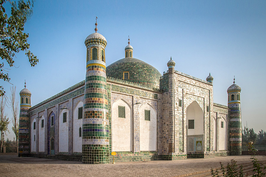 Afterwards we will visit Xiangfei Tomb; an ancient Islamic building nestles among poplar trees. With glazed tiles shining in the sun, its tower points to the azure sky. A masterpiece of Uigur architecture, this is Abakh Khoja Tomb, 17th Century family cemetery of the Kashgar area Islamic leader.