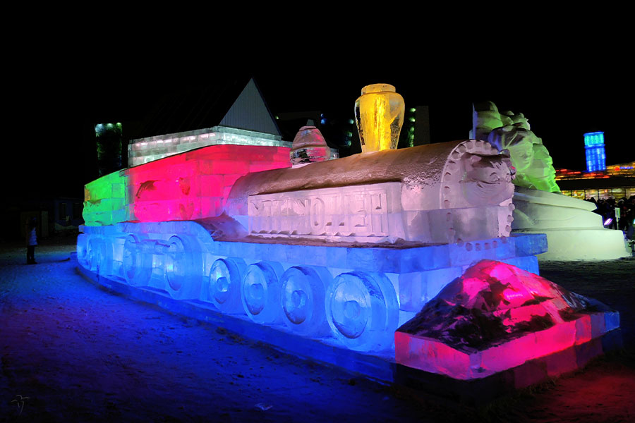 Today we will first see Siberian Tiger Park. And Sun Island Snow Sculptures is another highlight in your date time. Fanciful sculptures are made in the shapes of animals, plants, buildings etc. Some of the larger ones have included a crystalline ice bridge. It is an amazing ice and snow artwork. A spectacular banquet will be arranged for you! That is the "Harbin Ice and Snow World". As the dragon-head brand of the Harbin International Ice and Snow Festival, it provides visitors with a good opportunity to appreciate a galaxy of unique ice and snow art. When night falls, the sculptures are illuminated from the inside with colored lights, turn the place into a temporary fantast-land.