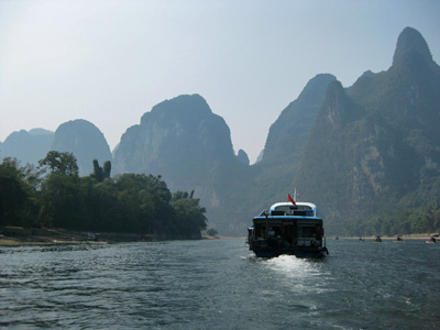 We first set off from Guilin by bus to Yangdi (you'd better take a direct bus to the Yangdi Ferry; otherwise you'll need to change another bus to the port at the Yangdi crossing). We bought the boat ticket at Yangdi Ferry (about 16 yuan per person) and started our hiking.