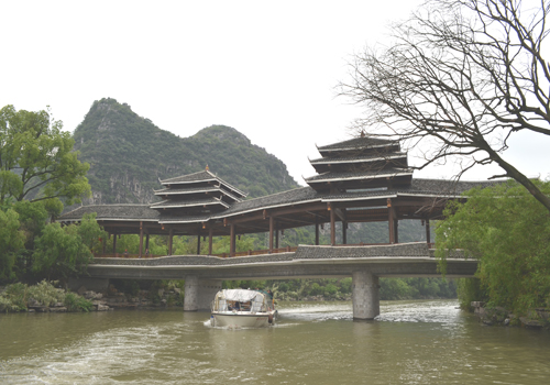 While I was just imaging the scene of Village Opera (a novel written by famous writer Lu Xun in China), an S-shaped bridge passed over our heads, with the name of Wind & Rain Bridge, it is alleged that as long as lovers walk on it they will be together forever. Though the bridge is not as ancient and famous as Chengyang Wind & Rain Bridge in Sanjiang, Liuzhou of Guangxi, it is equally the collective wisdom of Dong nationality, and it does represent the beautiful wishes of those simple people.