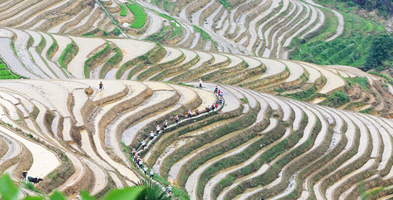 Activities: After the sacrifice ceremony, all villagers will work together in the terraced fields and a live folk custom scroll painting opens--people shouldering seedlings and fertilizers, leading cattle, carrying ploughs and harrows, and walking on the stone-paved winding roads to the fields...