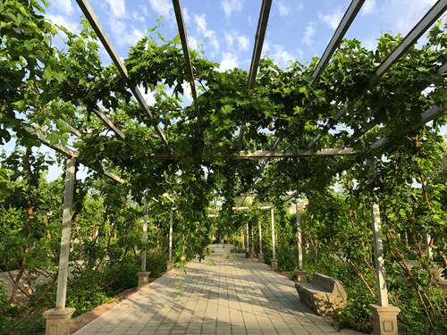 Going further to the west, it is more dry and hot, Turpan is just particularly hot. After 3.5 hours train journey, we reached Turpan. Our hotel is a courtyard hotel like the popular style in Europe, lots of grapes planted around. Now we are in Turpan which belongs to Xinjiang Uyghur Autonomous Region, and we bade farewell to Gansu province.