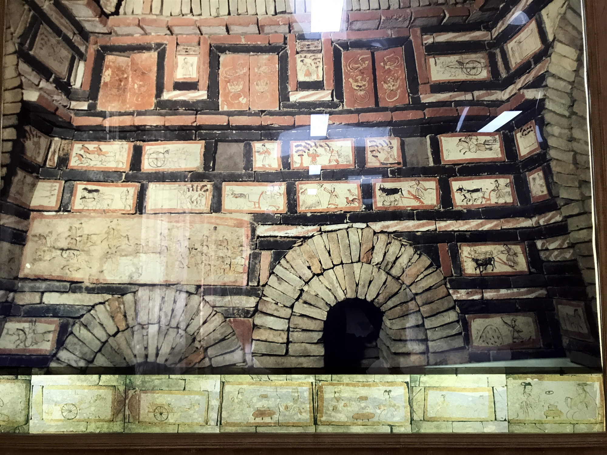 In the afternoon, we drove to a vast Gobi area, standing on the Gobi, free very wild and lonely. But underground of the Gobi, there are hundreds of tombs which were built in Wei and Jin Dynasty (between the 3rd Century and 5th Century), so this place is called Tombs of Wei and Jin Dynasty. We are so lucky to visit one of them which is open to the public. Entering the cool and dark bricks tomb, please note there is no light insight which is better to protect the murals, the guide can use the flashlight to show the chambers and murals. When you watch a great deal of colorful murals, the old generation people about 1700 years ago, they can dram such vivid partings to show their normal life, it is like a cartoon film to show the society, people, farming, cooking, business, etc. You are totally shocked by these. Because of the abundance of mural bricks, the Tombs of Wei and Jin Dynasties are renowned as the largest "Subterranean Art Gallery" in the world, it is really deserved the reputation.