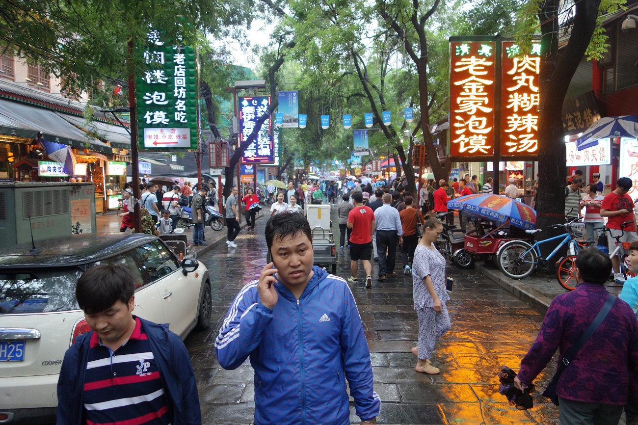 We are now en route to the Muslim Quarter. 50,000 Muslims live in Xian. In China there are about 330 million bicycles. 2 female police officers directing traffic. It continues to drizzle. The Muslim Quarter is a very busy place. 6-8 blocks of restaurants and dining options on both sides of this pedestrian mall. Huge crowds. A very festive fun atmosphere. Continuing down 'the Muslim Street' we have now entered another commercial district where seemingly everything but food is sold. Here it is all about souviners. I love the atmosphere in the Muslim Quarter 'Snack Street'. The souviners were pretty cool also. Great atmosphere.