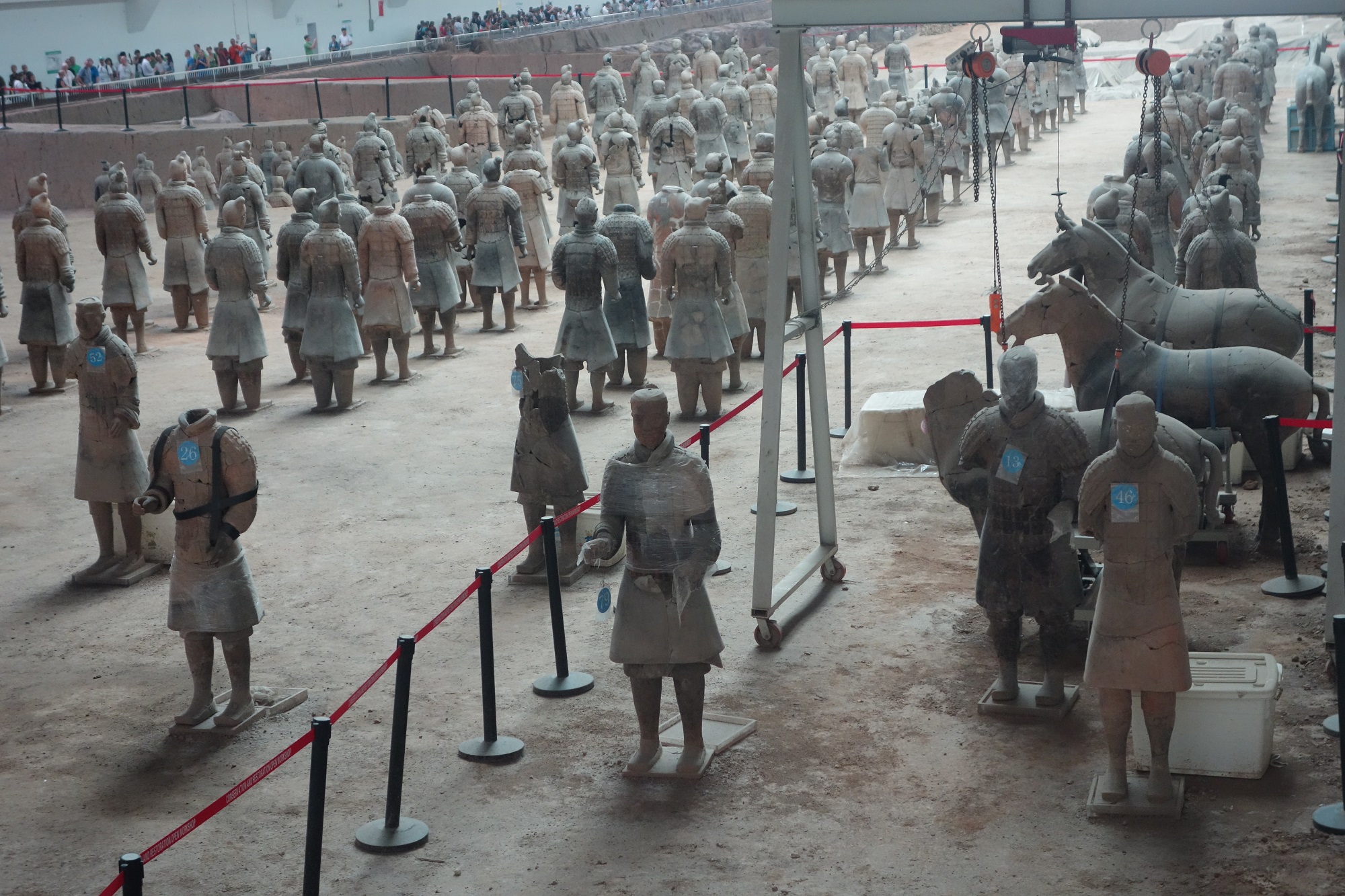 It is now 2 PM and we are again in our van heading back to Xian. Revisiting the terra cotta warriors was yet another amazing experience. These warriors were built under orders of Qin Shi Huang, the founder of the Qin dynasty who ruled a unified China as its first emperor from 221-207 B.C. Think about that! 200 years before the birth of Christ. I had previously visited this site in 1996, some 21 years ago. There have been so many changes to the area as best I can recall. In 1996 we arrived by bus and walked a very short distance to the site. Today we walked city blocks and city blocks and the changes in the area are quite substantial. Today there are shops and restaurants everywhere. The warriors, their horses and carriages are now found in 3 buildings. In 1996 photos of the warriors were not allowed. Today, everyone has a camera or a phone and is taking pictures. We had lunch at a restaurant on the grounds. There we again saw the women from our hotel who are traveling together. A Norwegian couple joined us. Since I am half Norwegian I engaged them in conversation about Norway, the fjords, and lutefisk. Thankfully we didn't have lutefisk for lunch today.