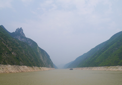 After departing Fengjie, the cruise ship continued its voyage to pass the first gorge and shortest gorge Qutang Gorge (8 km long), then the visual feast started. The remaining times on the ship, we could enjoy beautiful sceneries on both banks at nay time. About 1.5 hours later, the ship passed the second gorge Wu Gorge (46 km long).