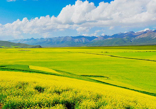 Every July, when most areas in China enter into burning summer, Qinghai Province just welcomes its spring, the season when its grasses turn green and flowers blossom. July, Qinghai Lake is a sea of flowers, and a paradise of birds. The rape flowers in Menyuan County are particularly beautiful when flocks and herds leisurely eat grasses, and horses joyfully stroll and run.