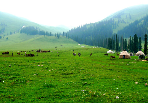 Nalat Grassland is hailed as the essence of the grasslands in northern Xinjiang. Since ancient times, it was a famous pasture with flat valley, steep peaks and lush forest. Enter Nalat is enter a fairyland with luxuriant grasses, a mass of flowers, densely covered springs, and running waters.