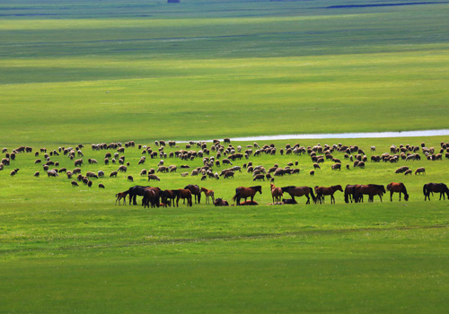 Hailed as No.1 grassland in Beijing, Bashang Grassland is especially charming in July. The grassland has high mountains, wide valley, scattered puddles of water and shiny green grass. The scenery is changing in a day, horses eat grasses in the mist in the morning, golden sunshine shine the grass sea in high noon, herdsmen on the horse to call back flocks in the dusk and at night, the gentle moonlight covers a veil on the grass and colored wild flowers.