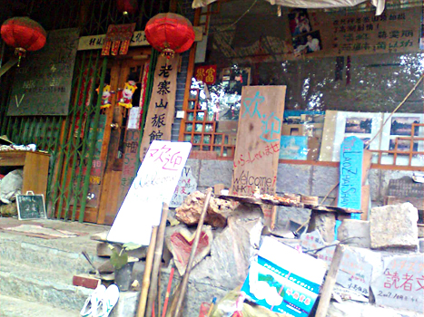 We also found an interesting and characteristic hotel called Laozhaishan Hotel, which was operated by a kind Japanese old citizen. It is special because there is a slate for every guest here to write their thought for memory. And the host will stick the stale on the wall and keep it for them forever. There are many stalls selling small things, just like the West Street in Yangshuo Town.