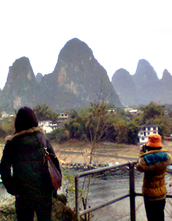 Our trip to Yangshuo started from about 9:00 am and we reached the port of Xingping Town at about 10:40 in the morning. There were many large boats in the river and the clean water and mountains formed a beautiful picture.Then we wandered to the Xingping Ancient Town, an ancient town mainly built in traditional Chinese style. We then get to a store full of wash paintings. The works there were so beautiful that we stayed there for a long time.