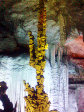 The caves there are of classical Karst Landform and the spot is comprised of 12 mountains. Crystal and white stalactites growing in different geological ages meet here, like the silver-shining and diamond-like Milk Way poring from the sky, so the cave was called the Silver Cave. The most famous three sights of Yinzi Yan are: Waterfall from the Snow Mountain (Xue Shan Fei Pu), Musical Stone Screen (Yin Yue Shi Ping) and Jade Pool Bar (Yao Chi Xian Jing); the three treasures of the cave are: Chanting Buddha (Fo Zu Song Jing), Ardisia Maculosa (Hun Yuan Zhen Zhu San) and Single Towering Column. Yinzi Yan is praised as the "Cave Marvel in the World".