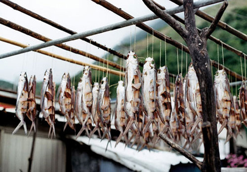Orchid Island of Taiwan, a volcanic island occupied by Yami people who eat flying fish and believe in flying fish. Every March to June is the season of flying fish. Yami people catch several fresh fish each day for the day and catch in large quantities in the end of fishing season to make dried fish for off season. It is simple to make dried fish by simply preserving the fish, then expose them in the sun for 3 days. Dried fish can eat directly or simply cooked.