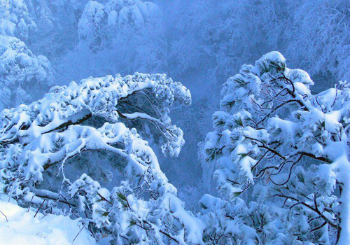 People in Huangshan witnessed the first snowfall this winter on the night of December 15th, and in only about half a day, the whole mountain was blanketed by snow and ice. Though Yellow Mountain is a popular destination all the year round, the supreme sights there in winter is especially unique. Different from snow in the north part of China which is famous for thickness and high viscosity, snow in the Yellow Mountain is lighter and purer. When the sun hits the snow, the entire mountain looks like a crystal wonderland.