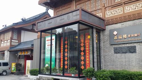 Tianfulou Vegetarian Restaurant is located in the No. 1 building, Mulong Lake Scenic Spot, North Zhongshan Road.