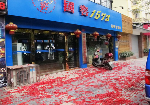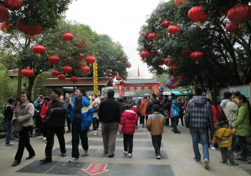 On the eve of Chinese lunar New Year, especially when the bell of the New Year chimes, cracklings of firecrackers and fireworks reverberate across the country as a whole. The next day, roads will then be strewed with scraps of red firecrackers paper. In the first three days of lunar new year (from February 10th to 12th in solar calendar this year), citizens of Guilin and the surrounding counties come to parks in swarms.
