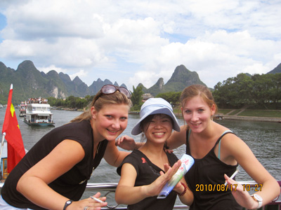 We reached Yangshuo at 2 p.m. and rambled along the renowned West Street, which is described as "Global Village" where thousands of people from all over the world visit everyday. In West Street where is full of Chinese culture, there are all kinds of shops, selling traditional Chinese things, e.g. toys, artwork, T-shirt, chirpaur, minority dress, bags, tea, snacks, etc; of course, if you would like to find a place to drink something or dine, just don't worry about it, as there are so many exquisite-decoration cafes and restaurants in and near the street, providing both Chinese and Western drinks and food. As for buy something in West Street, just feel easy to talk to the shop-keepers, because most of them can speak English more or less.