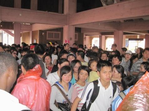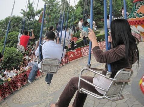 Arriving at the front gate we had to face that apparently a lot of Chinese people had had the same idea and arrived with group busses. It came out that apparently we were the only Non-Chinese people in the park, or at least we did not meet any other. As being students the entrance fee was 70RMB each. We entered the park and were not only surprised by the cleanliness but also by the fact that the attractions were as good as new. The surrounding landscape was very green and beautiful. I loved the many lakes most. The whole park is divided into five areas: Wild West,
