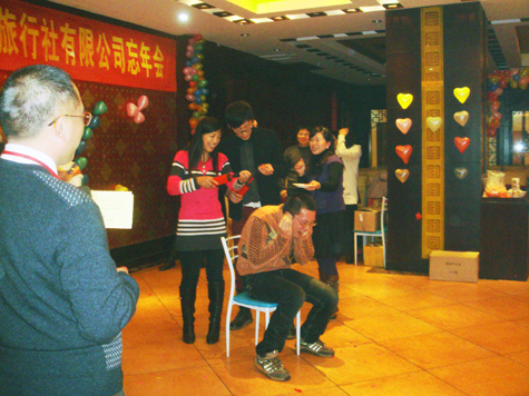 The biggest highlight of our tour to Ziyuan County is undoubtly the annul meeting party at night, which began at 19:00. It was manly made up of by four sections: introduction of the guests, Lucky draw (money as the prize), games and performances. We really had a great fun together with our colleagues. Laughs never stopped during the performance. The party lasted for two hours and half and we went to the KTV of the hotel and spent more than two hours singing.