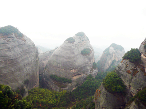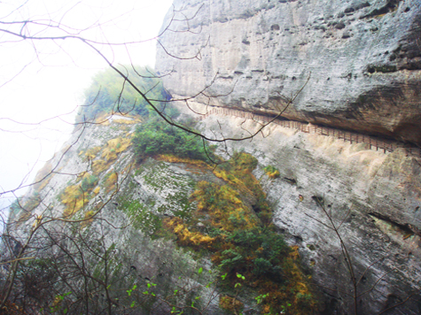 In China, climbing high mountains around the New Year period is a tradition and the climbers usually climb the mountain with good wishes for the coming new year. To welcome the 2010 tiger year (in lunar calendar), we climbed the Bajiaozhai Mountain of Ziyuan County. (Plus: Bajiaozhai Mountain is also called Yuntai Mountain with an altitude of 818 meters. Bajiao in Chinese means eight squares and there are indeed eight squares in the mountain. Danxia Landform distributed widely in the area and more than 30 landscapes were then formed, such as Xianglong Yan, Longtou Xiang, Longji Tianti and Yougu Zhandao.)