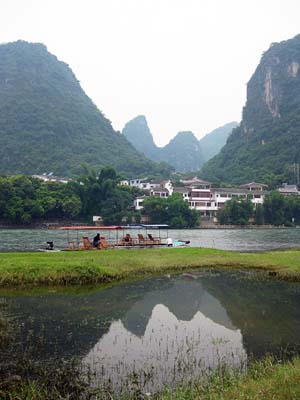 Arriving in Yangshuo, we walked along the West Street to the riverbank of Li River. There were lots of boats in the river. And we were told that the Li River rising in the Mao'er Mountain in Xing'an Country of Guilin. On the other side of the river, there was a small island, where some people are riding horses on the green grassland. The island was so beautiful that we decided to reach there by boat. Standing on the island, we had a relatively overall impression of Yangshuo: the West Street and grand mountains enhance each others' beauty, inverted reflection can be seeing in clear waters... A couple was taking their wedding photos. And we all admired the professional dedication of the photographer!
