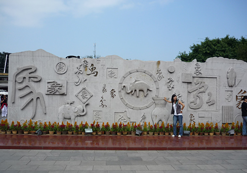 When entering the park, the first sight comes into view is a huge wall decorated with Chinese ancient characters of "elephant" (象xiang). But why elephants? Are there elephants in Guilin? No, the elephant is famous here for the mountain’s karstic formation looking indeed surprisingly like an elephant dipping its trunk into the river. This is indeed one of the coolest things to see in Guilin, this natural rock formation lying at the junction of Li River and the Peach Blossom River is one of the most famous one in the city, giving visitors some amazing photo shots opportunities especially at dusk with the sunset giving a special color over the mountain and the water. The Shuiyue Cave (水月洞, Moon over the Water Cave) is maybe the most impressive and catchy sight you may meet in the site, where ancient inscriptions can be seen if renting one bamboo boat.