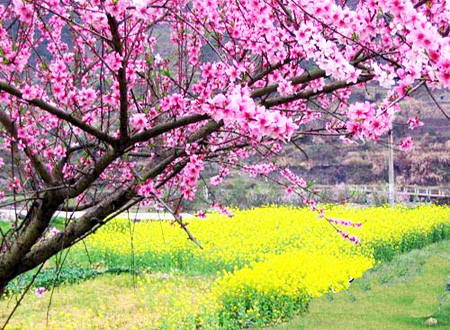 Tao Yuanming, a famous poet of Dong Jin Dynasty has given as a detailed description of a perfect peach blooms land so the peach blooms land has become a good choice of appreciating peach blooms. There are over 30 types of peach blooms in Taoyuan County of Hunan Province. Peach Blooms Festival is held here on March 28th every year.
