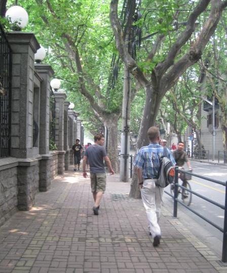 We decided to pay a visit to Yuyuan Garden (40RMB each), which was definitely worth it. The architecture of small pavilions, lakes and gardens seemed very natural and down to earth. It was like a paradise of silence in the fast moving city of Shanghai where you could recharge your batteries while wandering though it. It was especially amazing to see the tops of the skyscrapers in Pudong behind the walls of the garden. Then we took a taxi to a Bamboo 7 massage studio. The studios are spread all over the city (www.bamboo7.com) and provide massages for reasonable prices. As I wanted Andi to get to know a typical Chinese Massage, we booked one for one hour and then relaxed while getting the massage. I have to mention that it was very good, and not only my brother but also me was satisfied (and I have had quite a lot of massages in the past). It cost us 70RMB per person and afterwards we took a taxi back to Nanjing Road. But this time we stopped the driver at the very western end of Nanjing Road and walked down in into the direction of the city center. This part was more than we had expected as at this part of the street one luxury shopping center was located next to each other. It was amazing to see the enormous shops from Boss, Louis Vouitton, Chanel and Burberry several times within few minutes. In between huge hotels and Banks had been built up. Finally we took a taxi back to our hotel to go to the gym and afterwards dress up for the evening. Until 11pm we were sitting at a side street of Nanjing Road and had some beer until our father informed us that he also was on his way to the hotel.