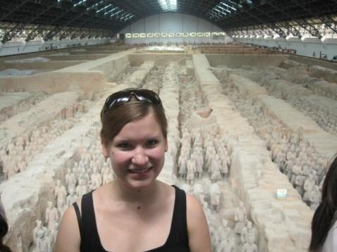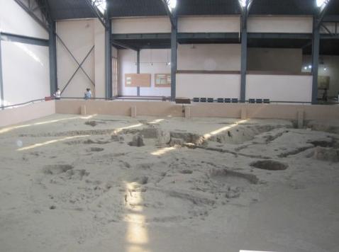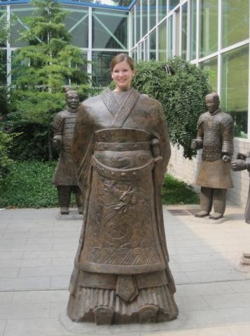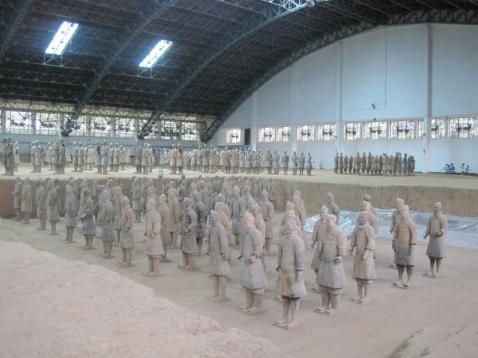 At 8.30 I met my local guide Lee in the lobby of the hotel. In a private air-conditioned car we then headed to Banpo Village. It is the first museum at the prehistoric site, and was built at the base of the excavations of the Banpo site. Since 1958 it is open to the public. The Banpo Site is a typical Neolithic matriarchal community of the Yangshao Culture dating back about 6,000 years. At that time, the Banpo people used tools made primarily of wood and stone. Women, the crucial labor force, were responsible for making pottery, spinning, and raising the family, while men went fishing. The archeological excavations showed the structures of the former buildings and gave me an idea of how people used to live that long ago. Especially the importance of women and children was stunning. When children died, they were buried next to the houses of their families.