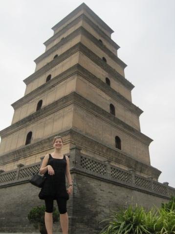 Finally we drove to Big Wild Goose Pagoda, a Buddhist Pagoda located in southern Xi'an. It was built in 652 during the Tang Dynasty and originally had five stories, although the structure was rebuilt in 704 during the reign of Empress Wu Zetian and its exterior brick facade renovated during the Ming Dynasty. One of the pagoda's many functions was to hold sutras and figurines of the Buddha that were brought to China from India by the Buddhist translator and traveler Xuanzang. Nowadays there are still 200 monks living in the temple, which is few compared to the 2000 they have been hundreds of years ago. The temple is very new; the only old and original building on the area is the Big Wild Goose Pagoda. It is possible to climb it up after paying an entrance fee, but we did not do that. However we surrounded it. Looking at it from “behind” you can see that it is not straight anymore which apparently is caused by underground water. I enjoyed the atmosphere there, with monks sitting around, trees and (apart from tourists walking around) silence.