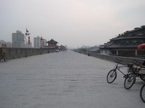 Finally we made a walk to the southern gate of the City Wall. When visiting Xi’an a walk on the wall is a must-do, and we did not want to miss it. On the top of the wall we finally decided to take a rickshaw for half an hour. We were driven into the direction of the west gate and made several stops to take pictures.
