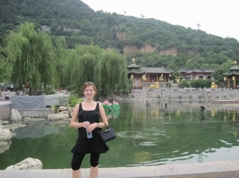 After lunch we paid a visit to Huaqing Hot Springs. They are situated at the northern foot of Mt. Lishan in Lintong County, 30 kilometers (18.6 miles) from Xian City, and are famous for both its dainty spring scenery and the romantic love story of Emperor Xuanzong (685-762) and his concubine Yang Guifei in the Tang Dynasty (618-907). The palace has a history of 3,000 years and the hot springs a history of 6,000 years. We walked through the different bathing houses and saw two of the three springs, where 43degress Celsius warm water flows up from the ground.