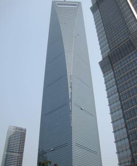 and then walked to JinMao Tower. On our way we passed several enormous building lots; due to the Expo 2010 which is going to be in Shanghai, they are (re-)building even more than they usually do. We took the elevator to the 54 storey, the first storey of the Grand Hyatt, which is in the tower.