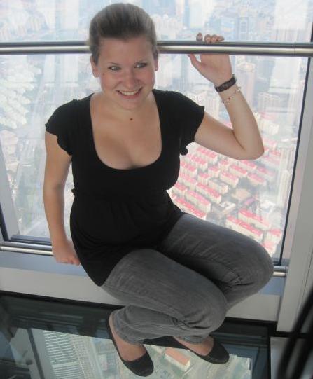 We then took another elevator to get to the highest level within the hotel (85th level) to have a look down into the lobby. Finally we went down again to have some drinks in the restaurant of the hotel and to enjoy the view on the surrounding area. However at this storey the SWFC Building next to us was still twice as high as we were. So we took the elevator to get down and crossed the street to enter the SWFT-Building. Actually it has the highest public observatory in the world, located 474m high over Shanghai.