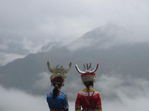 Basti had organized a private car which picked us up at 8am. The weather was cloudy and not extremely warm. The driver left Guilin city and drove northwards to Longsheng County. After one hour the driver drove into the mountains and the street became very curvy. Suddenly mist surrounded us and it was impossible to see more than 20m far. We reached the entrance to Longji Rice terraces at approximately 10.30am. The entrance fee per person was 50RMB. From the very first moment we felt like being demoted in time. At the side of the street women of Zhuang and Yao nationality were selling souvenirs.