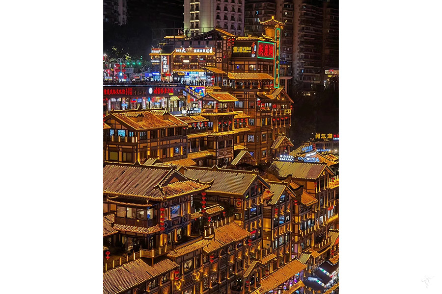 Stilted buildings of Hongyadong belong to the rail-type ones, which are built along river according to the terrain of the mountain. The structure of the buildings is simple and flexible. These stilted buildings with traditional architectural features of Chongqing integrate the six business forms of catering, entertainment, leisure, health care, hotels and characteristic cultural shopping through different architectural techniques, forming a unique "three-dimensional aerial pedestrian street", which has become an urban scenic spot and business center of the city.