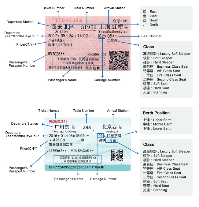 There are two types of train tickets in China, with red and blue papers. Passengers holding red-colored train tickets should go through the manual ticket checks and blue-colored ones to the automatic ticket checks. Below let's try to get the information on these China train tickets.