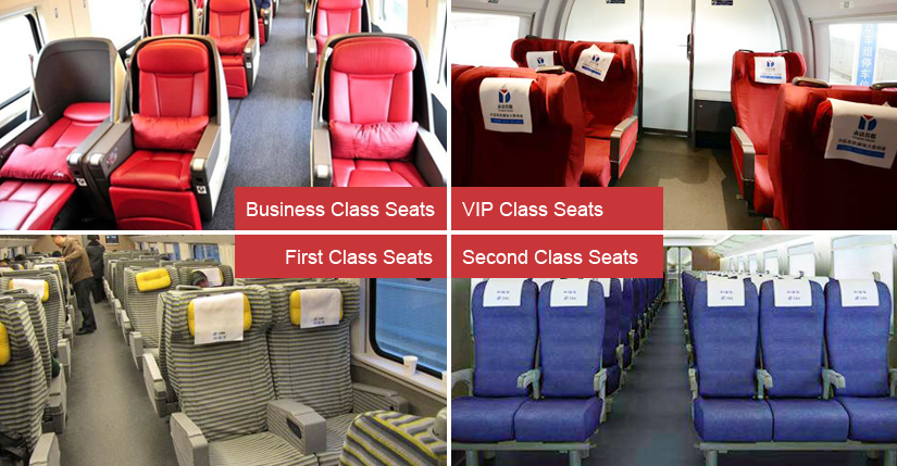 Seats/tickets on China fast trains are generally divided into four types, i.e. business class seats, VIP class seats (on few trains), first class seats and second class seats. On a few overnight fast trains, luxury soft sleepers and soft sleepers are available. Generally people choose second class seat for it has most favourable price and also with most seats on fast train.