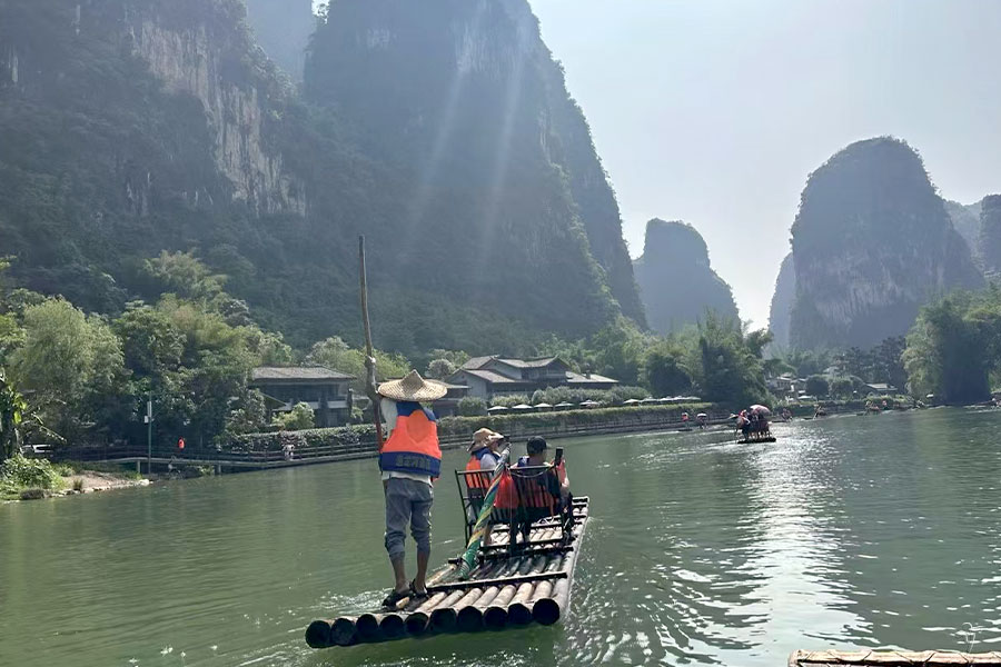 A leisure rafting along the essence views of beautiful Li River & Yulong River.