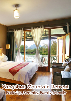 Yangshuo, a world famous fairyland, embraces the most typical karst landscape in the world. A universally recognized saying goes that landscape in Guilin is the best under heaven, yet that in Yangshuo is even more beautiful. Each single peak and each drop of water here are labeled with romance. The water section in Yangshuo is the essence of Li River with poetic scenery; it is hailed as Ten-mile Gallery for mirror-like water, oddly-shaped limestone peaks, simple water buffalos & paddy fields, and fishermen padding their bamboo rafts. Richly endowed by nature, numerous featured boutique hotels & resorts rise in response to the advantaged conditions. In Yangshuo, you can find many outsiders and foreigners, they arrived in Yangshuo, then never gone. Several old buildings or simple new eco-friendly constructed architecture, they can create a unique retreat here. Just return to nature, they combine modern technique with simple home furnishings, traditional hand-made decorations, and employ people from nearby villages, Yangshuo boutique resorts will not let you down and offers you a serene family-like retreat with local hospitality set in the elegant Chinese painting.