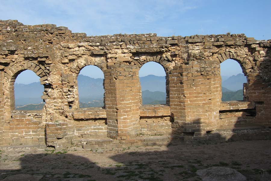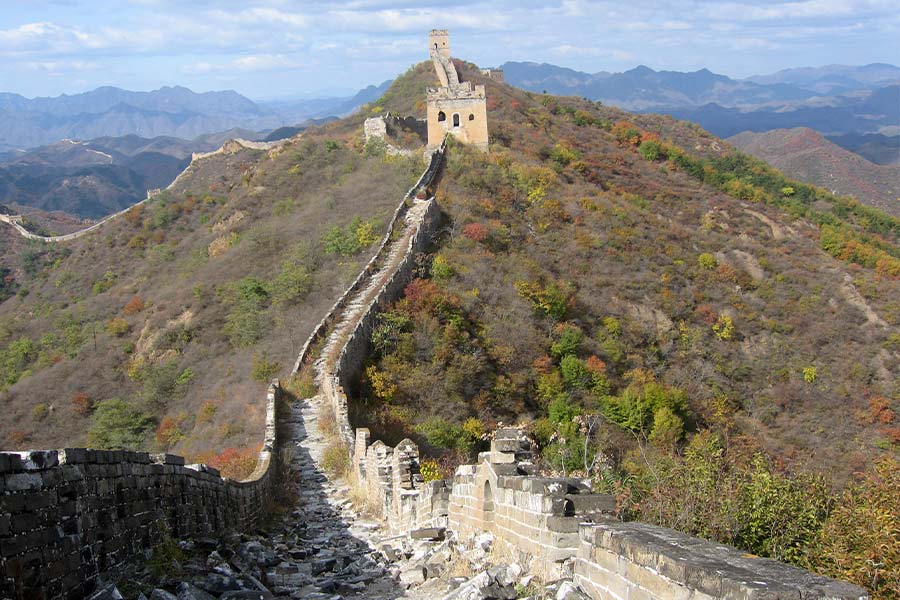 More than 10 km southeast of the Gubeikou Great Wall in the suburb of Beijing, the Jinshanling Great Wall is at 700 meters above the sea-level. On its eastern and southern sides there are the Simatai Reservoir and the Miyun Reservoir that look like two green mirrors in fine days; the northern side was once a place of strategic importance in ancient China.