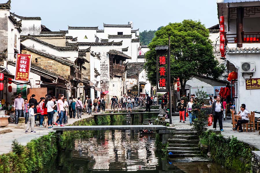 Likeng Ancient Village in Wuyuan County of Jiangxi Province was originally built by the Li Family Clan, and is 12 kilometers from Wuyuan County. Likeng is famous for its original architecture which has become synonymous with that of Anhui Province architecture. The village used to be a prosperous and well-renowned merchant town and cultural hub. Set against the picturesque background of a river and a mountain range, the village is home to some of Anhui's most stunning Qing and Ming Dynasty architecture, white washed home and classic grey tiles; the river flowing by the town is connected by several ancient wooden and stone bridges.