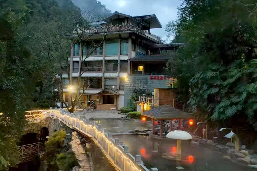 Longsheng Hot Spring Holiday Resort is a province-level resort embraced by mountains of Cambrian system; the fault zone reaching a length of tens of thousands of kilometers between the Baiya Mountain (白崖岭) and the Tian'ejie (天鹅界) is the main passage of the 16 streams of Longsheng hot springs, which rises up from the rock stratums 1200 beneath the ground with a temperature of 45℃-58℃. According to tests by national experts, Longsheng hot springs contain more than ten trace elements which make the water natural drinking water. Medically, the trace elements are also believed to be good for treating many diseases such as cardiovascular diseases, neuralgia, arthritis, diabetes mellitus, gout, dermatosis. These advanced natural conditions make it an ideal place for tourism, holidays, relaxation and health.